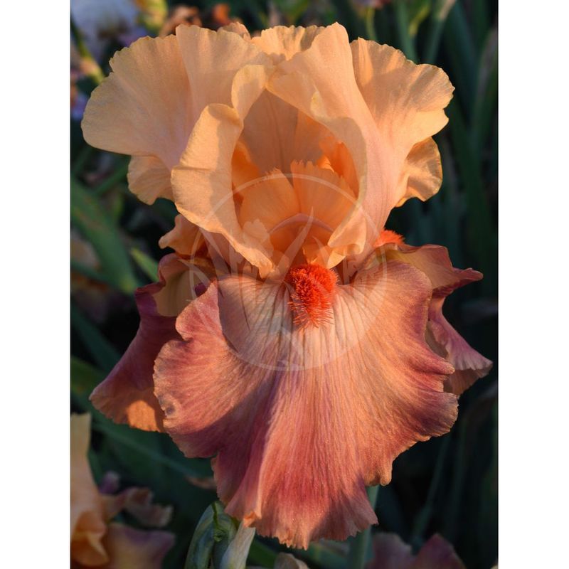 Standards peach orange, falls soft pinkish purple wash on lighter edge and around beard, slightly ruffled. Beards burnt orange. Very nice sort.