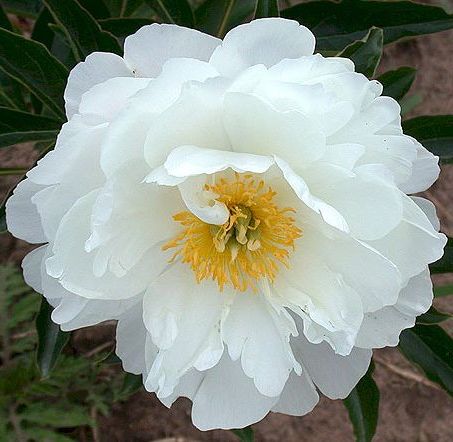 Flowers large, semi-double, blush to white with golden stamens and excellent fragrance. Very floriferous, early, no staking. Ideal as a cut - flower. Strong stems, height 80 cm.