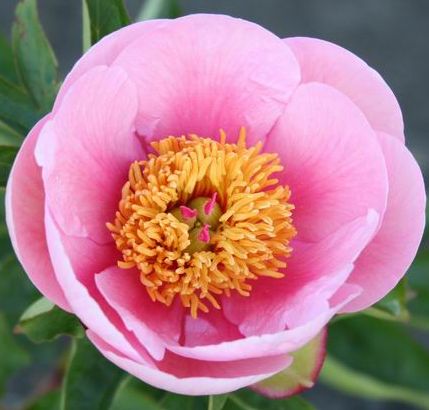 Soft salmon pink single flowers are saucer-shaped. Opening buds hold a true perfect cup-shape for a long time. Pink color shading to a deeper tone at the base of the petals, which surround the golden stamen centre. Perfectly formed, the flowers display a grand elegance and finesse. Flowers mildly fragrant. A lovely peony indeed...
