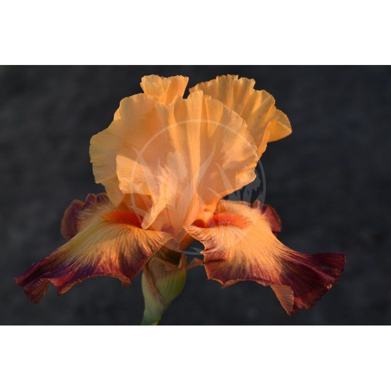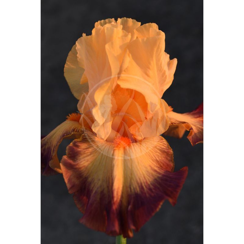 Dóm oranžový, fally meruňkově oranžové s fialově červeným lemem a fialovými žilkami, silně zvlněné. Kartáčky oranžově červené.