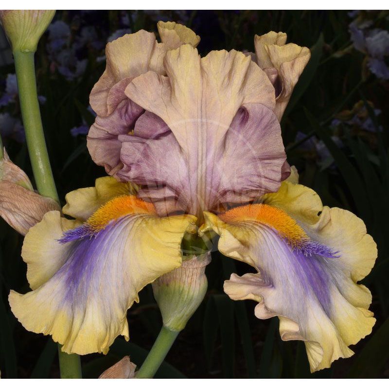 Dóm krémový s kouřově fialovým přelivem, fally krémově žluté ve středu téměř bílé s fialovou stopou, světle žlutý okraj. Kartáčky zlatooranžové, na konci levandulově fialové. Jemná sladká vůně.