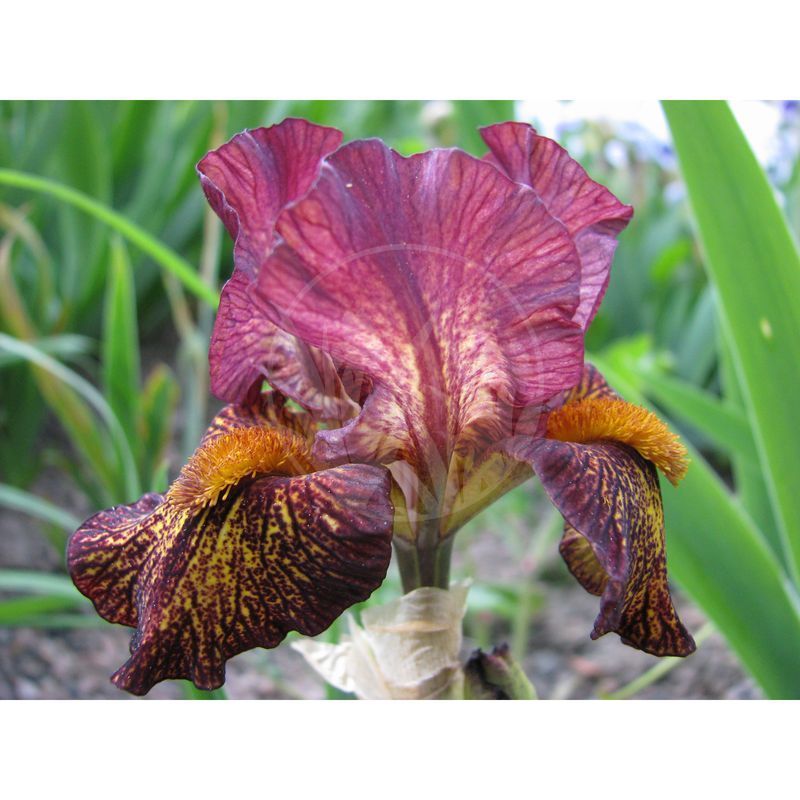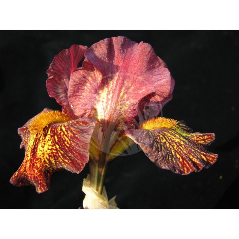 Dóm i fally na podkladě citronově žluté s portsky vínovým čárkováním a tečkováním, zvlněné. Kartáčky žlutohnědé. Květy jemně vonné. Výška 30 cm.