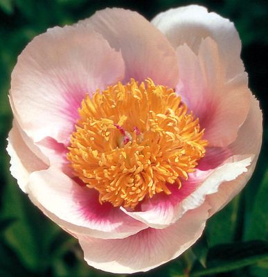 Květy jednoduché, velké, slonovinově bílé až světle meruňkově růžové s výraznými růžově fialovými paprsky na bázi okvětních lístků vytváří nádherný barevný efekt. Kontrastní zlatožluté tyčinky ve středu. Tento kultivar pochází z křížení čtyř přírodních druhů pivoněk: P. lactiflora x {(P. macrophylla x P. mlokosewitschii) x P. officinalis}. Velmi časně kvetoucí pivoňka s jemně vonnými květy. Silné stonky, výška rostlin 80 cm. Jen zřídka nabízená, vzácná pivoňka. Doporučuji!