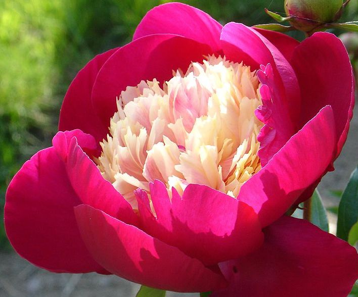 Květy japonského typu, vnější petaly tmavě růžové až ostružinové, obklopující slonovinově bílé tyčinky ve středu. Květy nádherně jemně vonné, vynikající k řezu. Kompaktní růst, dlouhá doba kvetení. Jedna z nejžádanějších pivoněk...
