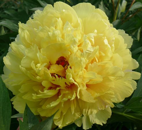 POLODŘEVITÁ PIVOŇKA (Itoh) Květy plné, veliké (18 cm), sytě žluté s prosvítající červenou uvnitř květu. Květy citrónově vonící. Zdravý a silný růst, plně mrazuvzdorná. Listy při rašení na jaře červené, později zelené. Jedinečná, velmi známá a oblíbená žlutá odrůda,.